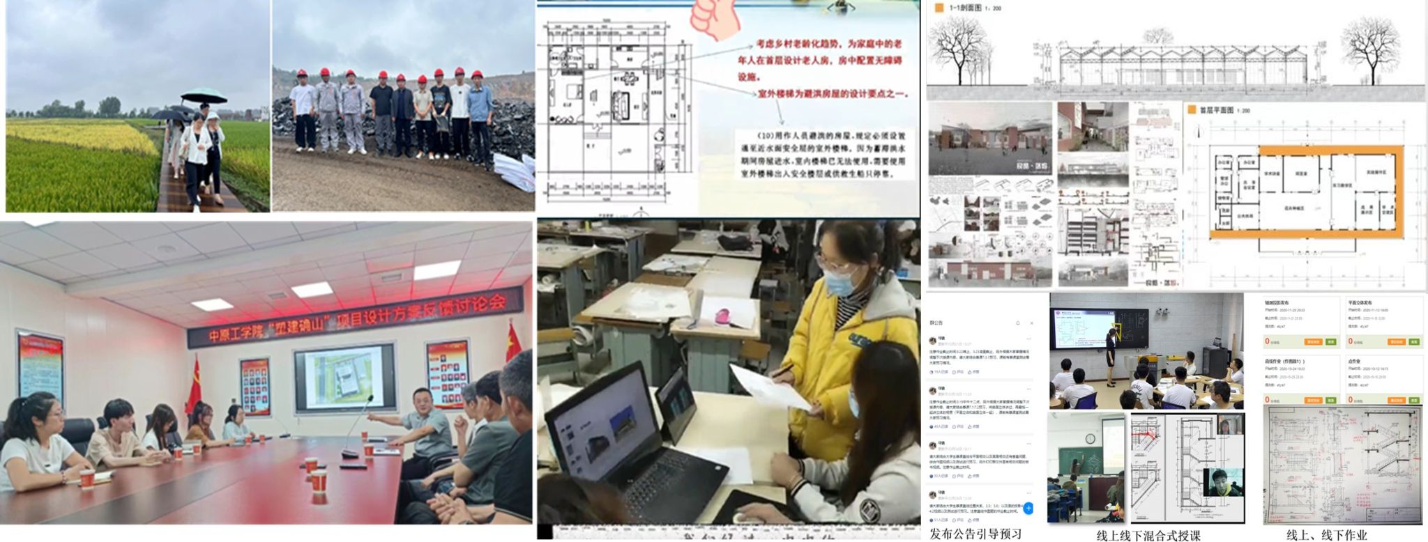 与中铁、中建等企业合作,引入真实工程图纸进行教学化改造,形成“厂房结构图识读”等教学项目,同时组织学生对校园建筑进行测绘、建模、出图,完成“校园建筑数字化档案”建设项目,结合乡村振兴战略,开展“农房改造图纸设计”“传统村落测绘制图”等公益实践。