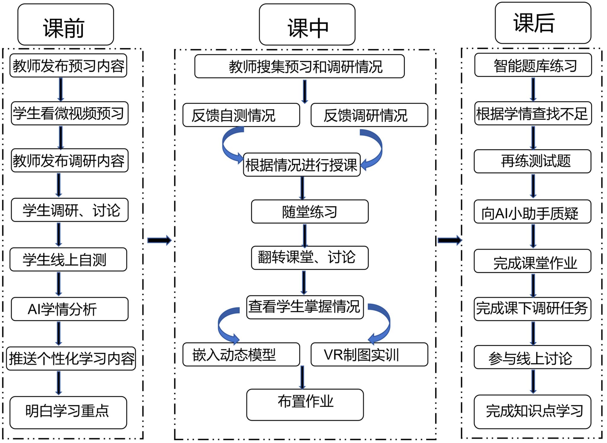 课前预习(线上资源)→ 课中探究(案例研讨)→ 课后巩固(习题实践)→ 反馈优化(学情分析)