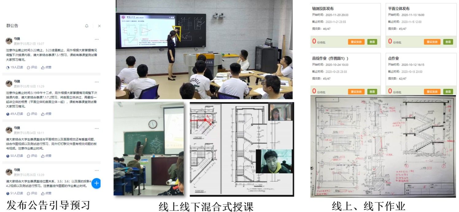 2018年,团队完成《土木工程制图》慕课视频录制与在线资源建设,首次实现课程线上线下混合教学,获“校级慕课专项教学成果三等奖”,初步形成“教师主讲+案例研讨+实践绘图”的教学模式,思政教育开始系统融入教学环节。